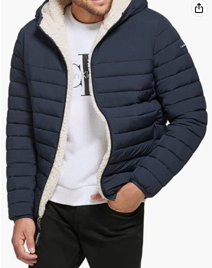 Calvin Klein Men's Hooded Down Jacket Quilted Coat Sherpa Lined